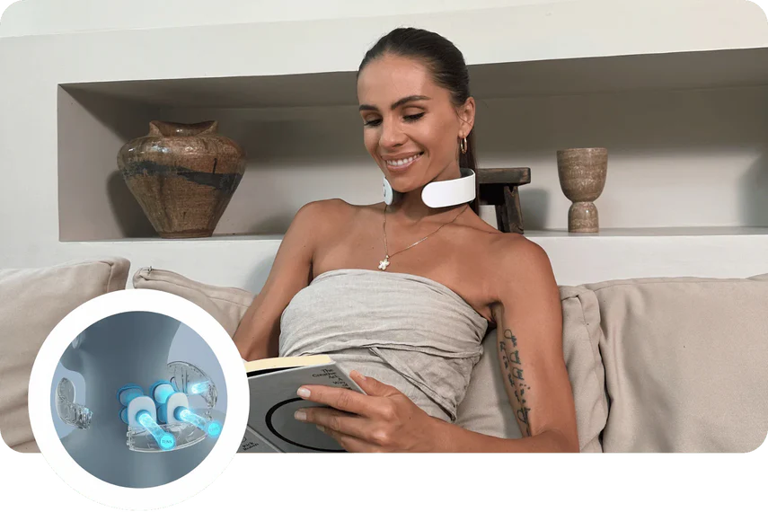 Die Kombination aus EMS-Impulsen, Wärme und TENS wirkt tiefer als herkömmliche Methoden – für spürbare Entlastung in wenigen Minuten.