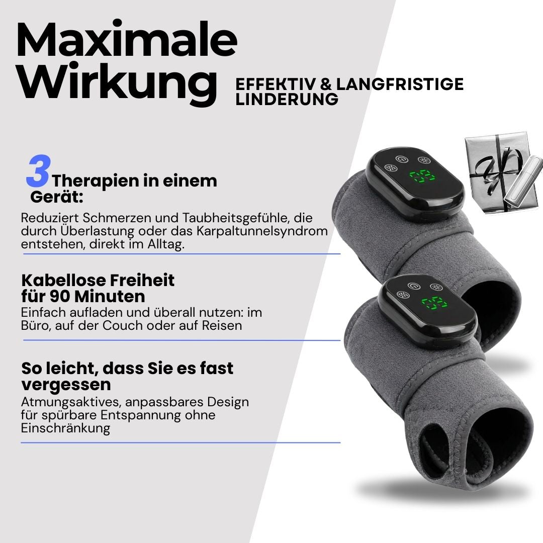 „„Seit 2021 leide ich unter Schmerzen und Taubheitsgefühlen im Handgelenk. Nichts hat geholfen und ich war skeptisch, aber nach einigen Wochen mit diesem Gerät konnte ich meine Finger tatsächlich wieder spüren. Ich habe aufgehört, Dinge fallen zu lassen, und habe mehr Kontrolle und Kraft gewonnen. Ich wünschte, ich hätte dieses Gerät schon vor Jahren entdeckt.“!“